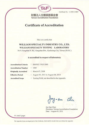 | Jun. 2006 - established Testing Lab under the guilder of Taiwan Accreditation Foundation (TAF) |